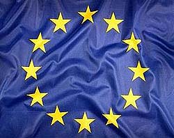 strahlend blaue Flagge mit den zwölf goldenen Sternen, als